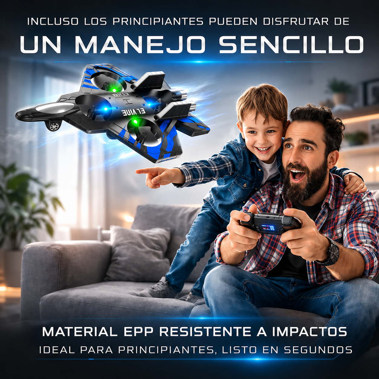 Despega en segundos. Diversión inmediata. Ideal para niños y adultos.
